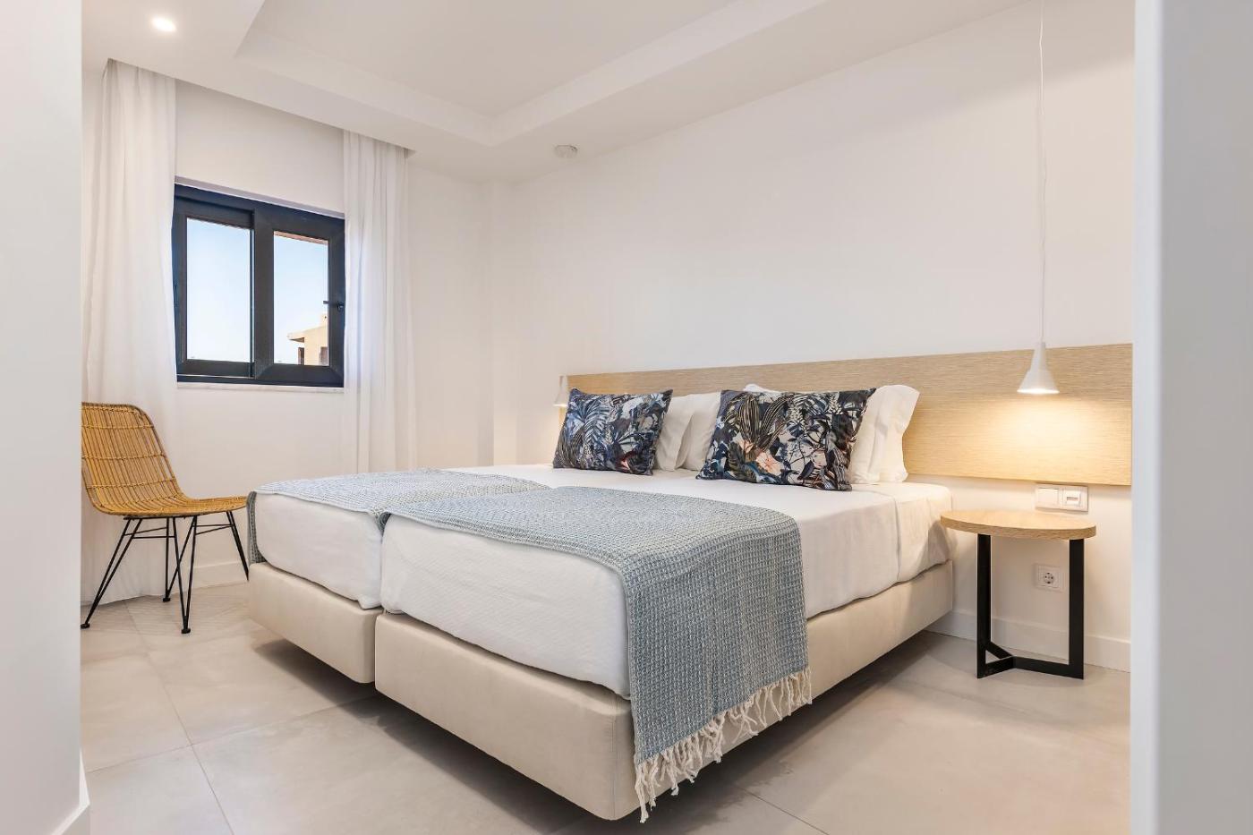 Sea View Deluxe Two-Bedroom Apartment. This apartment consists of 1 living room, 2 separate bedrooms and 1 bathroom with a shower and free toiletries. Guests can make meals in the kitchenette that is equipped with a stovetop, a refrigerator, kitchenware and a microwave. The air-conditioned apartment provides a flat-screen TV with satellite channels, soundproof walls, a tea and coffee maker, a seating area as well as sea views. The unit offers 5 beds. ;
