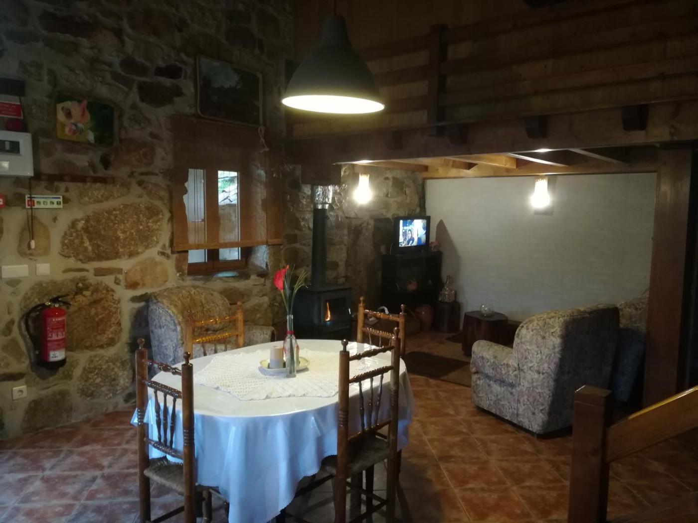 One-Bedroom House. This house features exposed wooden beams and stone walls. It includes a bedroom with a single bed, an extra rollaway bed, heating and views of Serra da Estrela. The ground floor is an open space area which includes the living room, a dining area and a fully equipped kitchenette. The house includes a fireplace, a sofa bed, and a TV. Outdoors barbecue facilities are available. Linen and towels are provided.