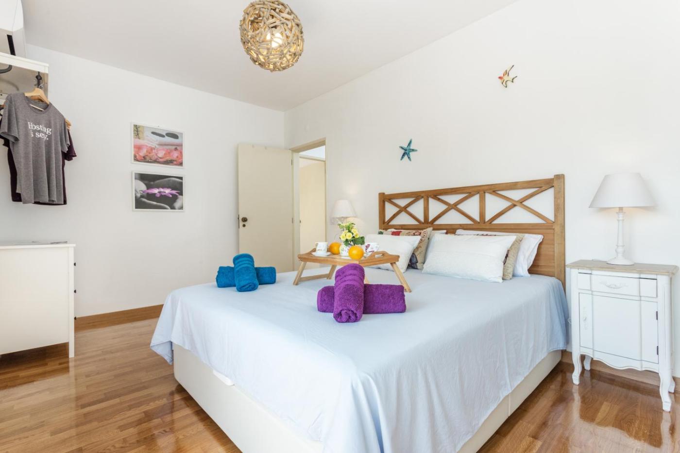 Two-Bedroom Apartment. This spacious apartment comprises 1 living room, 2 separate bedrooms and 1 bathroom with a walk-in shower and a bidet. In the kitchen, guests will find a stovetop, a refrigerator, a dishwasher and kitchenware. The air-conditioned apartment provides a flat-screen TV with cable channels, a washing machine, a tea and coffee maker, a seating area as well as city views. The unit offers 4 beds.