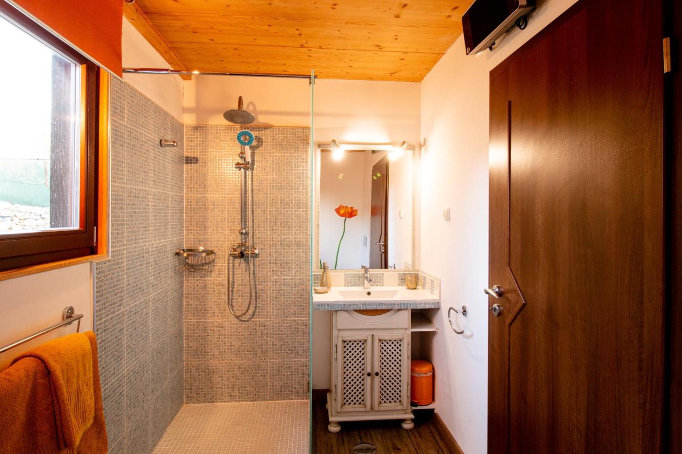 The bed and breakfast comes with 2 bedrooms, 1 bathroom, bed linen, towels, a flat-screen TV with satellite channels, a dining area, a fully equipped kitchen, and a terrace with pool views. The unit is soundproofed and includes a parquet floors as well as a fireplace. The property has an outdoor dining area.