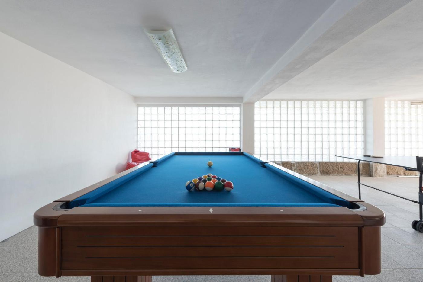 You can play billiards and table tennis at the holiday home. Guests can also relax in the garden.