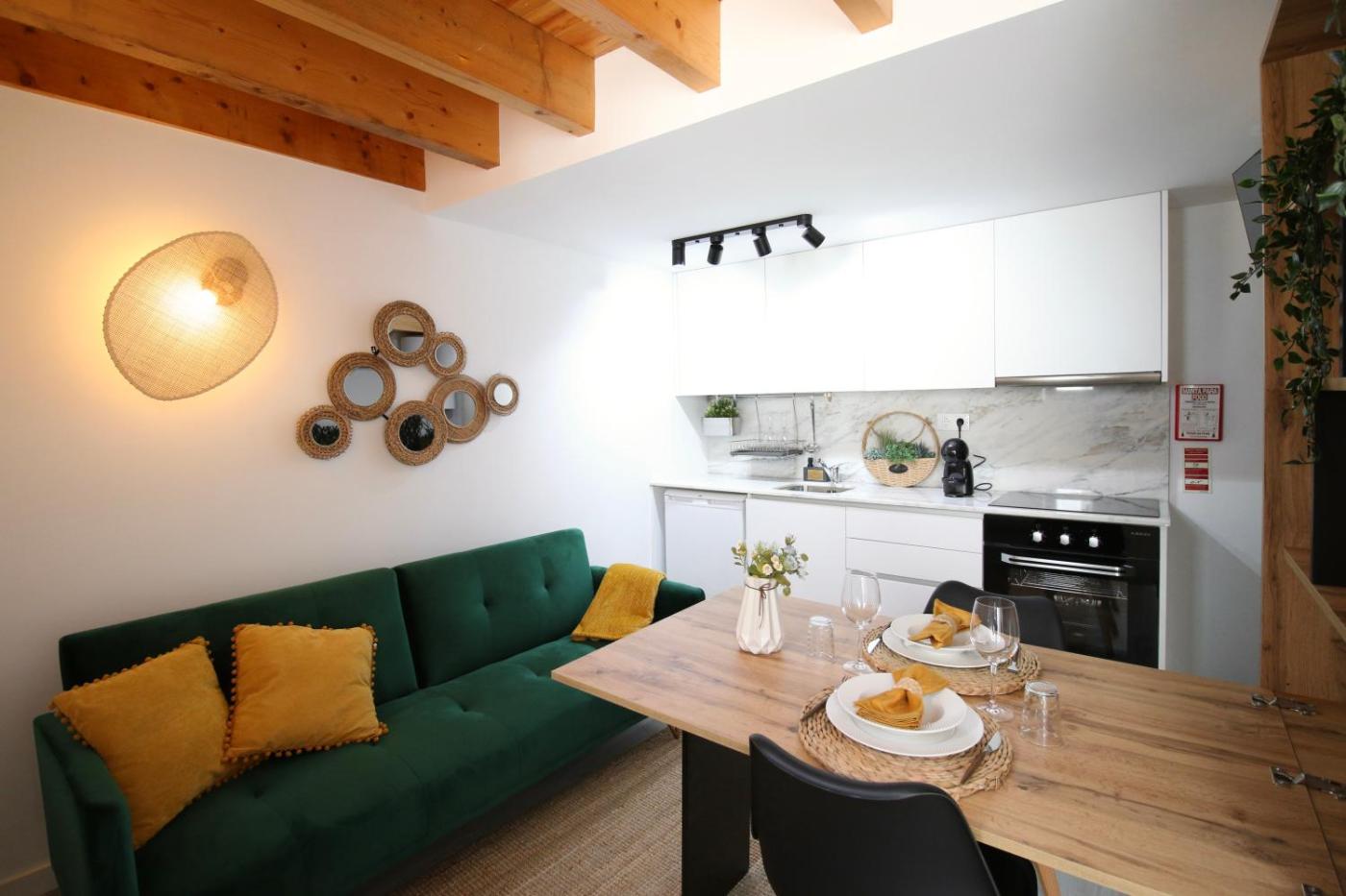 One-Bedroom Apartment. Featuring a private entrance, this air-conditioned apartment consists of 1 living room, 1 separate bedroom and 1 bathroom with a shower and a hairdryer. Guests can make meals in the kitchenette that is equipped with a stovetop, a refrigerator, a dishwasher and kitchenware. Boasting a terrace with ancourtyard view, this apartment also provides a tea and coffee maker and a flat-screen TV. The unit offers 2 beds.