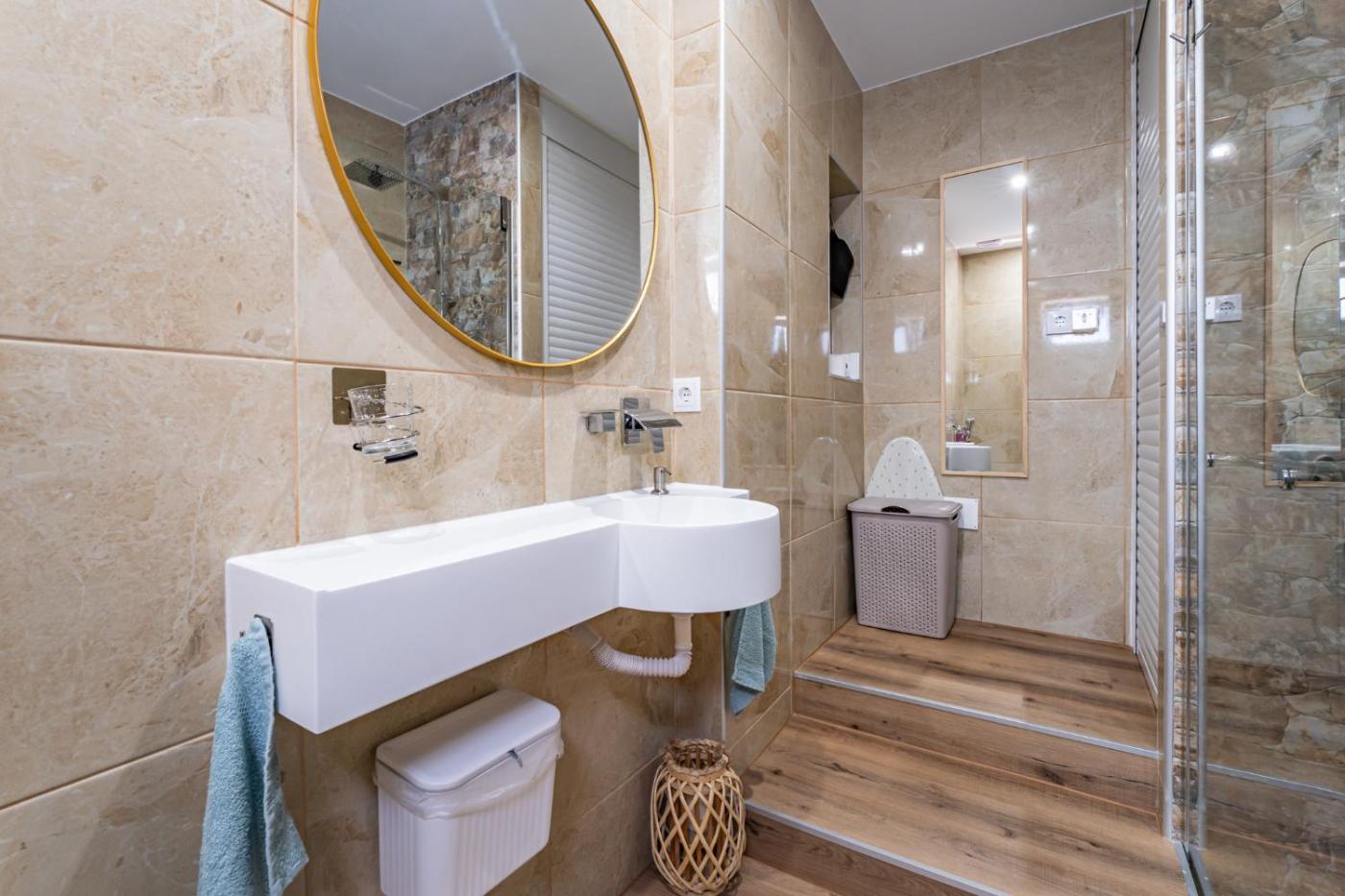 One-Bedroom House. Boasting a private entrance, this air-conditioned holiday home comes with 1 living room, 1 separate bedroom and 1 bathroom with a walk-in shower and a hairdryer. In the kitchen, guests will find a stovetop, a refrigerator, kitchenware and an oven. This holiday home has soundproof walls, flat-screen TV with streaming services, sea views, as well as chocolate for guests. The unit has 2 beds.